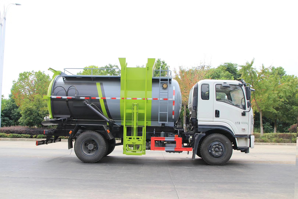罐體采用優質碳鋼板材,罐體內部選裝帶固液分離功能(全推推板,不銹鋼泔水分離網板),選裝罐內加熱功能(用于嚴寒地帶防止罐內餐飲垃圾凍結凝固,采用柴油燃燒機加熱,加熱速度快效果好,可設置高低溫實現自動溫控)。餐廚垃圾車帶全液壓操作系統,罐體舉升自卸,拉桿式掛桶提升機,可以掛120/240升垃圾桶進行作業,后蓋液壓驅動開啟、鎖緊,方便人員操作。