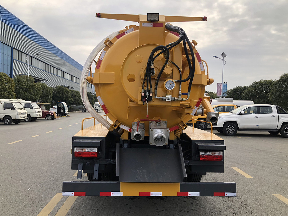吸污部分:7方污罐,罐體6mmQ235優(yōu)質(zhì)碳鋼,配淄博SK-12水循環(huán)泵,8米吸污管一根,進(jìn)氣管加不銹鋼過濾網(wǎng),真空防溢閥,后蓋卡扣鎖緊,視污量管,后尾部加裝1個(gè)力拓牌100mm的球閥吸污口150mm排污口,100mm口徑側(cè)抽,罐體帶舉升功能,后門帶液壓開啟。