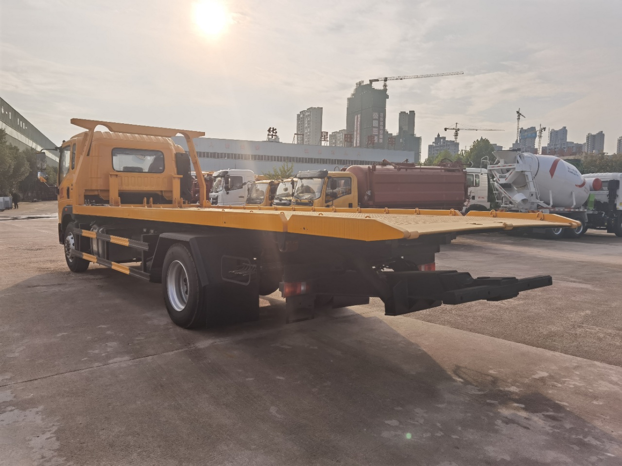 一拖二上裝配置:雙側聯動操作裝置,8噸平板,8噸3節后拖臂,8噸絞盤(35米鋼絲繩)帶液壓翻板1.2米。總板長7.9米。4根綁帶,L型抱胎架一對,抱胎筒一對,小車1對,1套拖叉座,3套拖叉。