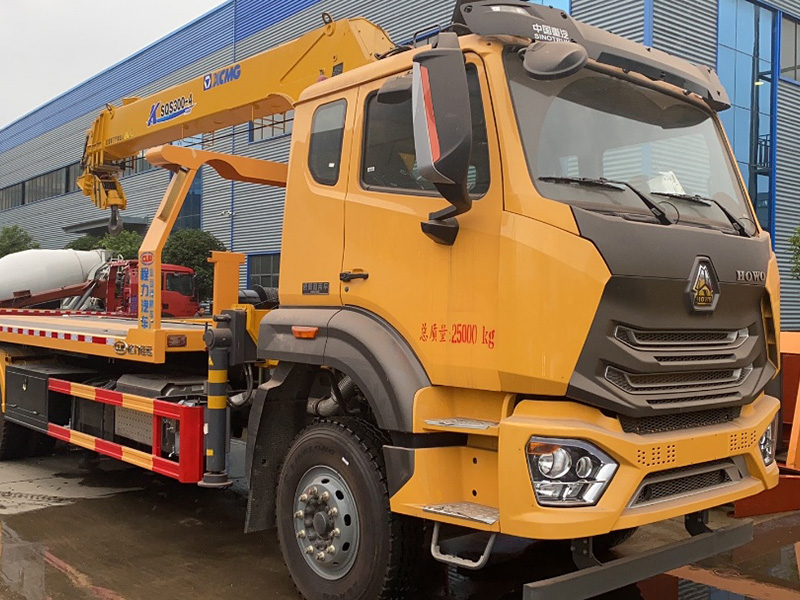 上裝配置:徐工12噸四節臂吊機,8500*2550大平板,板面采用6mm碳鋼花紋板,平板伸縮采用雙油缸技術,進口大流量多路閥,海戰力油缸,16噸三節后拖臂,副梁干沉工藝,平板前端帶下沉凹槽,15噸紋盤,50米鋼絲繩,**,喊話器一套,受力部均為HG70高強度板沖壓焊成型。